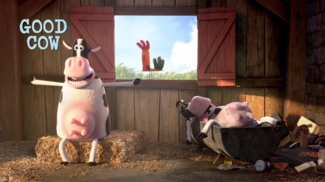 We provided custom animation rigs for these awesome characters. The main challenge for the cows was to create rigs capable of performing a wide range of motion both as bipeds and quadrupeds.